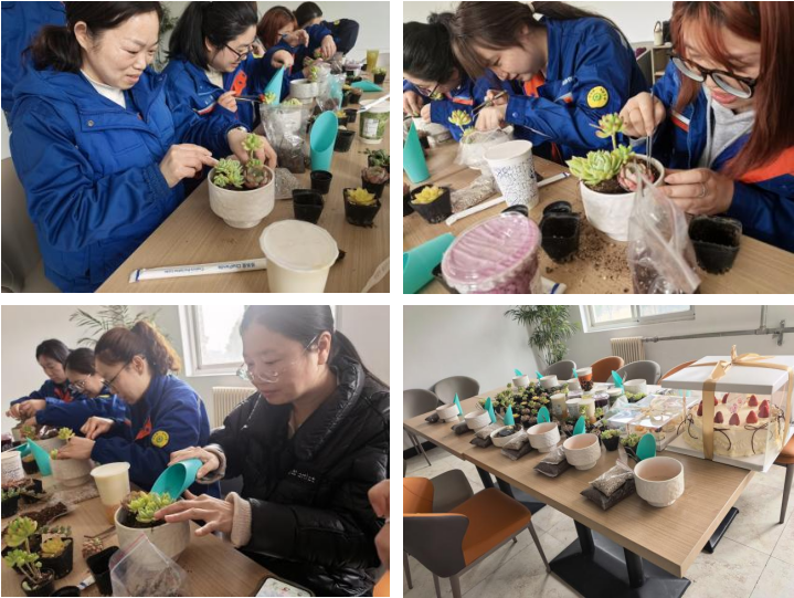 員工們通過親手組裝多肉植物盆栽,體驗到了種植的樂趣,感受到了春天的溫暖氣息。公司會議室被布置成了一個充滿自然氣息的綠色小天地。桌上擺放著各式各樣的多肉植物、花盆、土壤以及裝飾小石子等材料。經(jīng)過一番精心的組裝,一盆盆形態(tài)各異、色彩斑斕的多肉植物盆栽呈現(xiàn)在大家面前。
