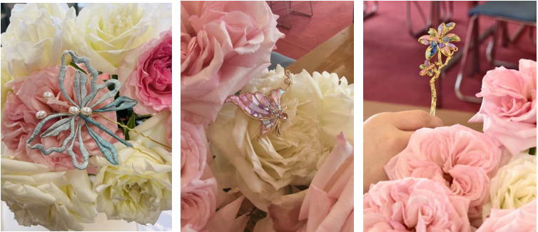 享用完美味的下午茶,活動進(jìn)入了充滿文化韻味的體驗環(huán)節(jié)——纏花工藝和螺鈿工藝。大家迫不及待地動手嘗試,穿針引線、纏繞絲線,最終一朵朵纏花在大家手中逐漸成型,或粉嫩嬌俏的蝴蝶,或潔白無瑕的鈴蘭。